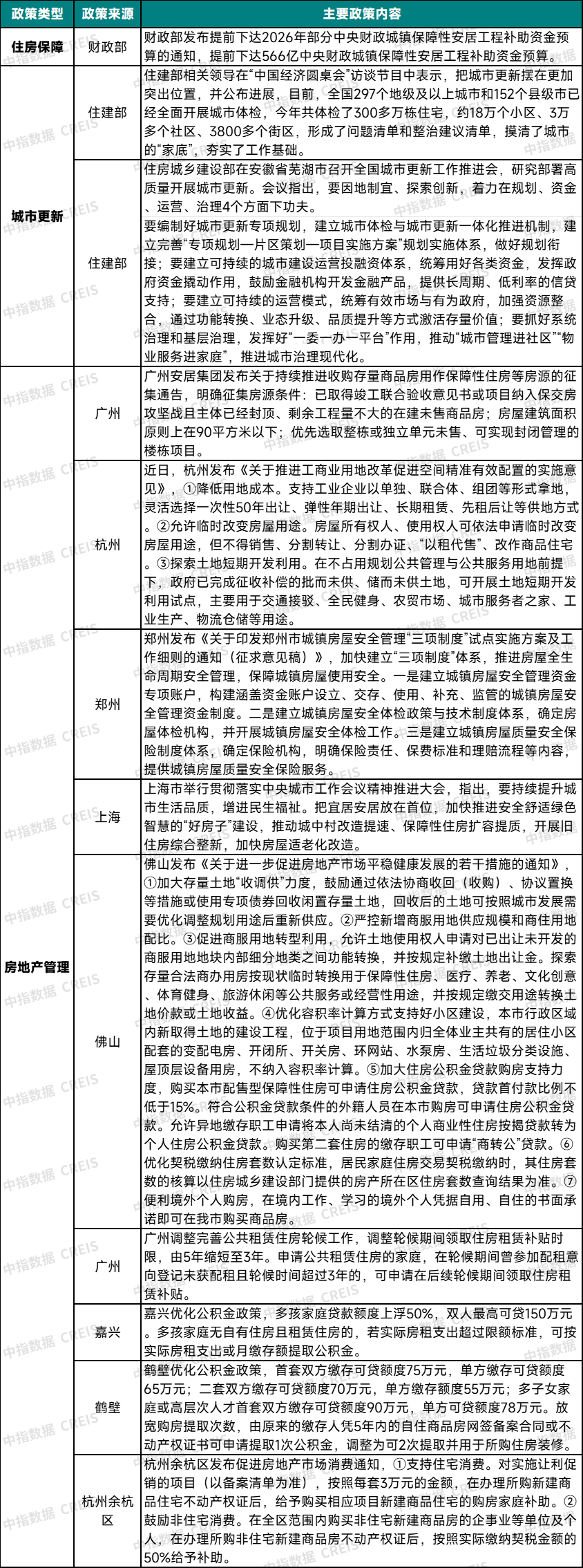 财政部提前下达566亿城镇保障性安堵工程补助资金,住建部召开世界城市更新责任鼓动会推敲部署高质地开展城市更新;广州常态化收购存量商品房用作保障性住房,杭州出台工买卖用地改良实施见识,佛山优化境外个东说念主购房条款,佛山、嘉兴、鹤壁等地优化公积金贷款策略。